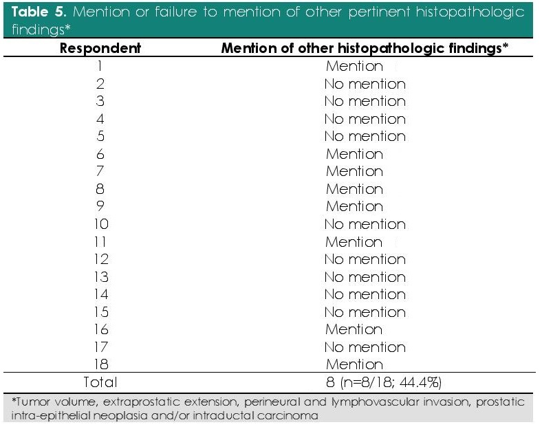 Table 5. Mention or failure to mention of other pertinent histopathologic findings*