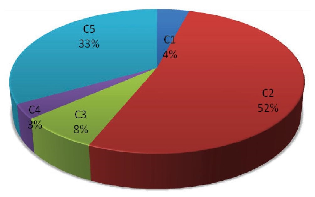 Figure 1. Percentage of breast fine needle aspiration cytology cases per category (C1-C5).