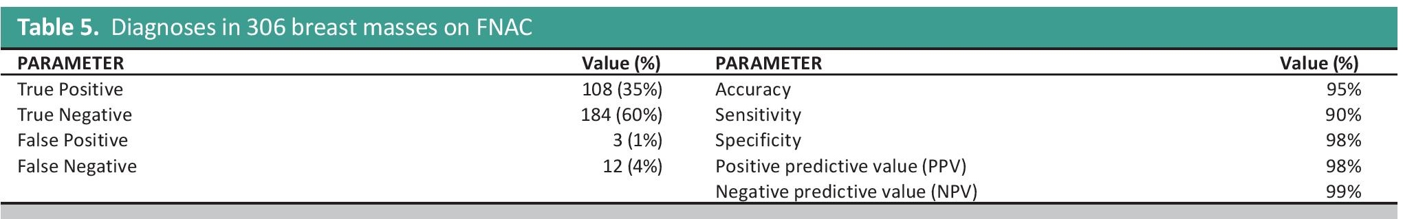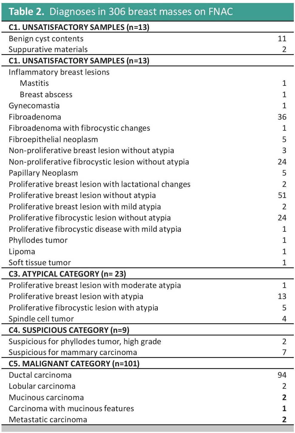 Table 2. Diagnoses in 306 breast masses on FNAC