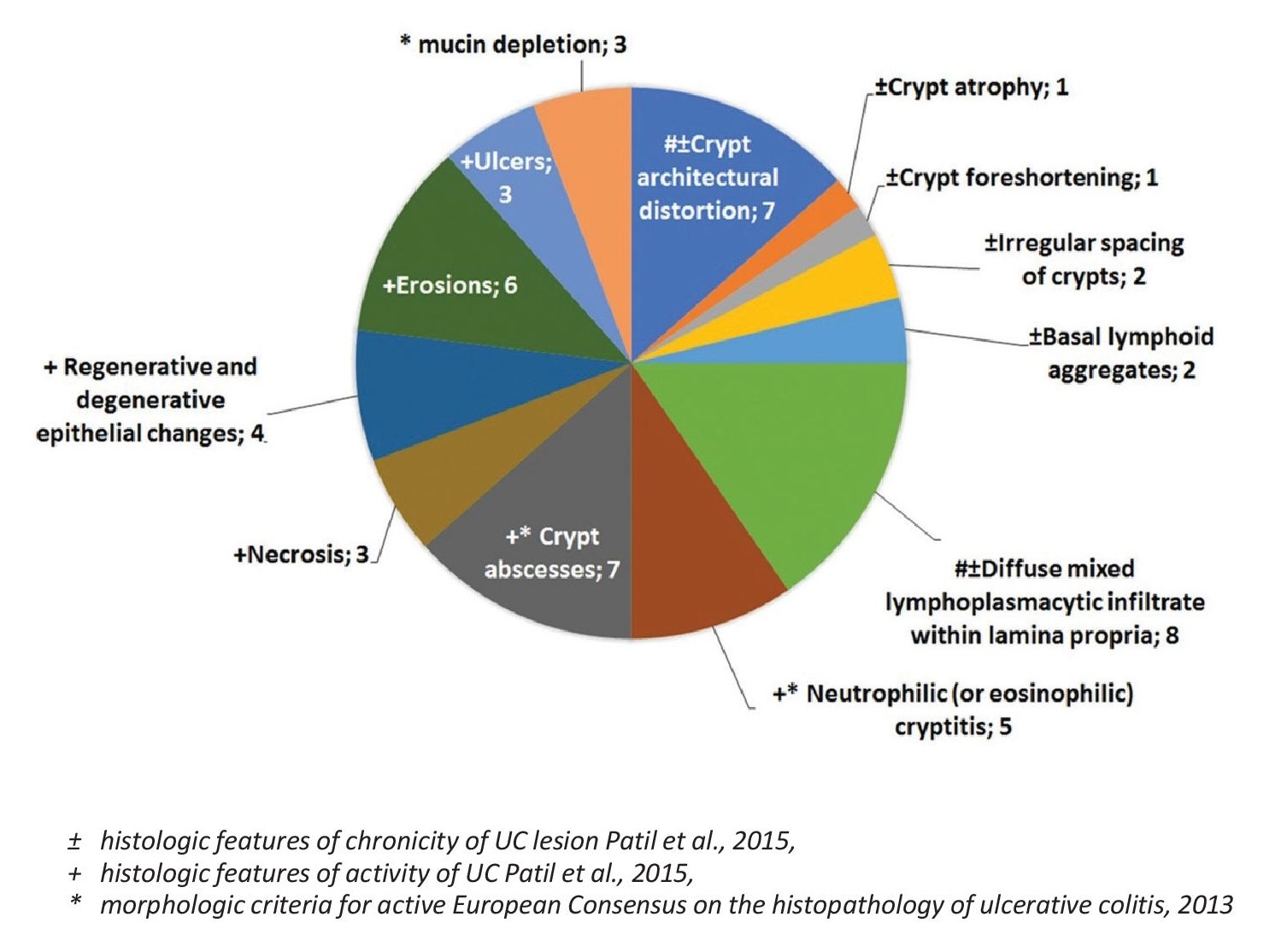 Figure 3. Frequency of specific morphologic features in ulcerative colitis (n=10).