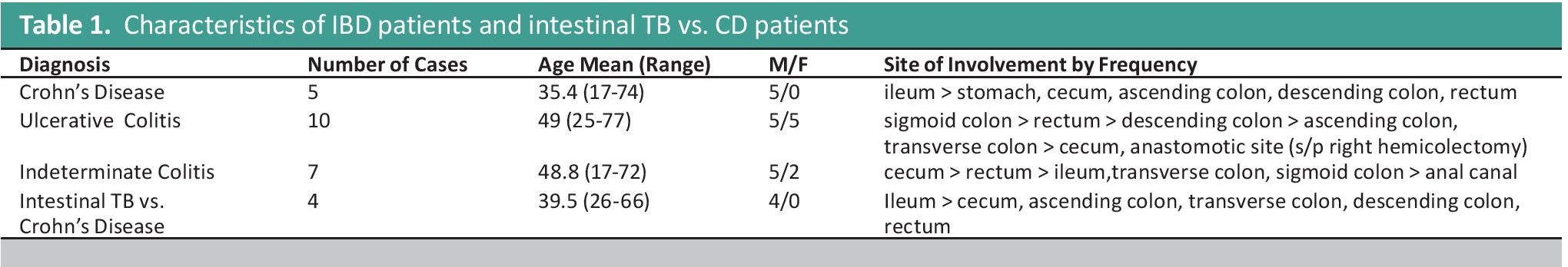 Table 1. Characteristics of IBD patients and intestinal TB vs. CD patients