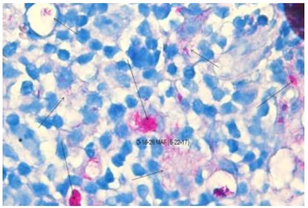 The MAF staining method is a modification of the Ziehl-Neelsen (Z-N) method which the primary investigator developed during her experience in the Histopathology Laboratory of RITM. This modified method involved samples that are processed for 30 minutes at 63° Celsius in a constant temperature oven, instead of 1 hour under ambient temperature. Instead of using 2% Sulfuric Acid as the decolorizing agent for one minute, 0.3% Hydrochloric Acid was used for 5 seconds. Lastly, counterstain and dehydration times were done for only five seconds, which are shorter by 40 seconds compared to the conventional method.