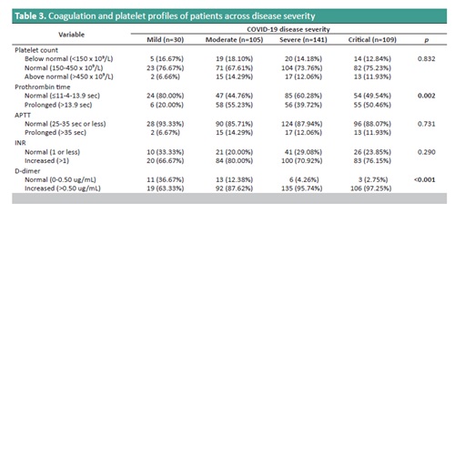 Coagulation and Platelet Profiles of COVID-19 Patients admitted to a COVID Referral Center from March 2020 to December 2022